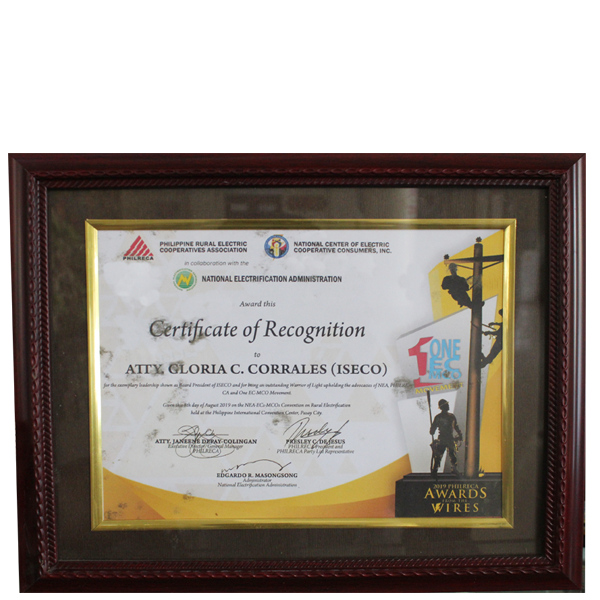 ISECO was also tagged as a Show Window of Rural Electrification in the Philippines by then NEA Deputy Administrator David Aguila because of the good services it provides to its electric consumers and because of its good operation.