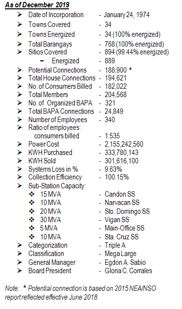 A distribution utility committed to meet the challenges, attain ultimate customer satisfaction and continuously contribute to the sustainable growth of Ilocos Sur.